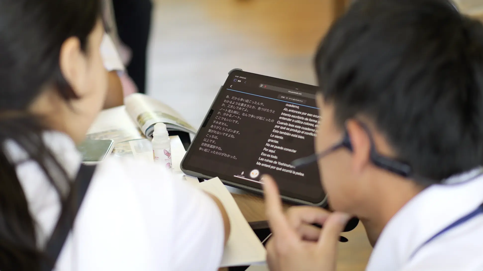 彼らが日本語で行われる専門的な授業をしっかり理解できるように、ライブ通訳機能を備えた 「Sentio ポケトーク for スクール」 を導入しました。