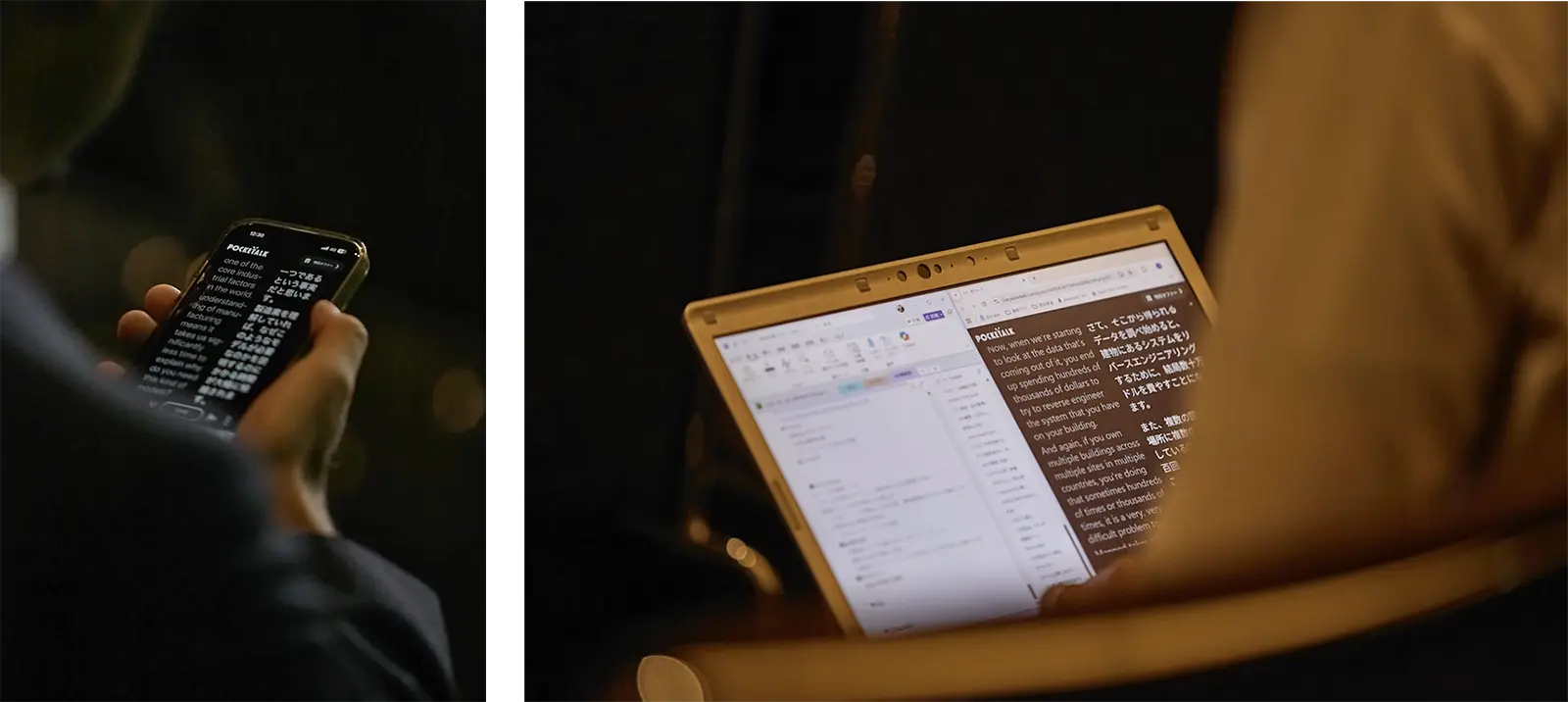 飯塚様: 同時通訳サービスを利用する場合、準備とコストの両面で大きな負担がありました。一方でポケトークカンファレンスは、翻訳精度に加えて、「議事録の代替」としても活用できる点に大きな魅力を感じました。現場の運営工数を大幅に削減できるという期待から、導入を決めました。