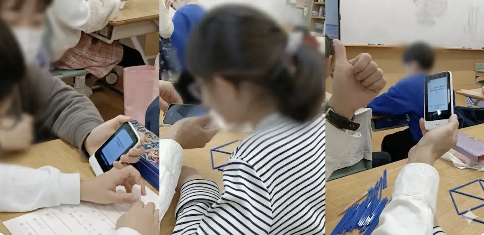 授業でポケトークを使用する様子。課題が上手くできた場合、褒める時にも使用されています。