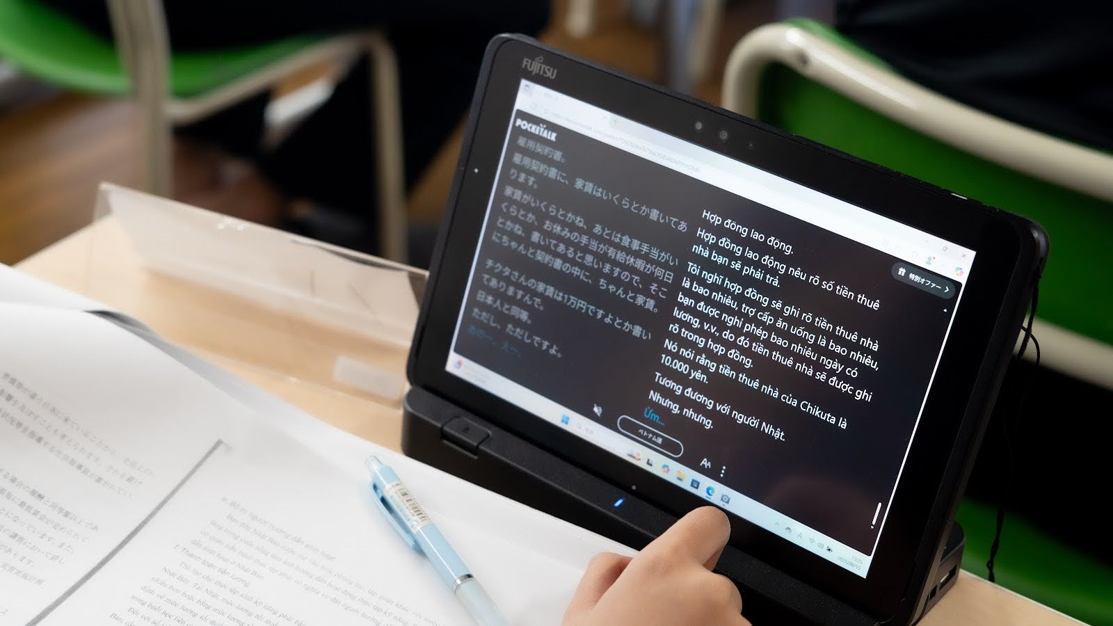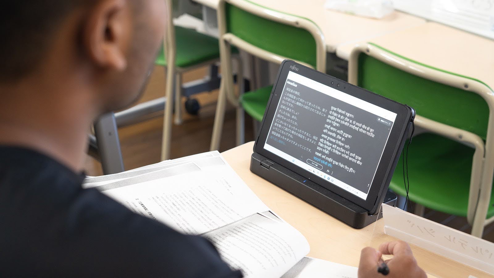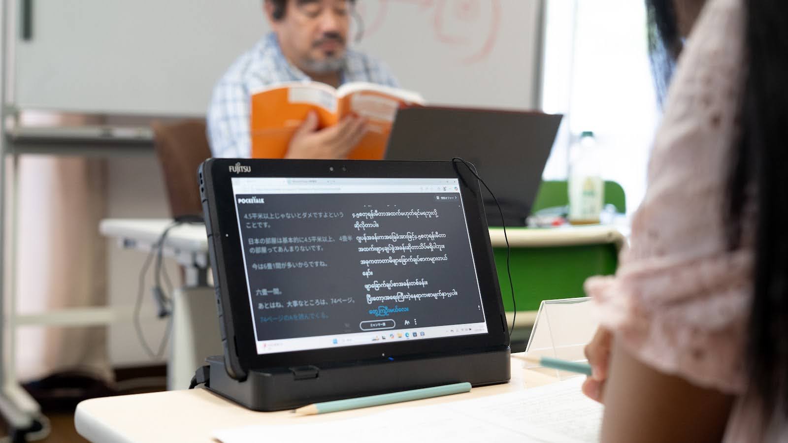 翻訳結果をそれぞれの実習生のタブレットにリアルタイムで表示できるため、多言語の研修を1つの教室で効率的に行えると考えました。