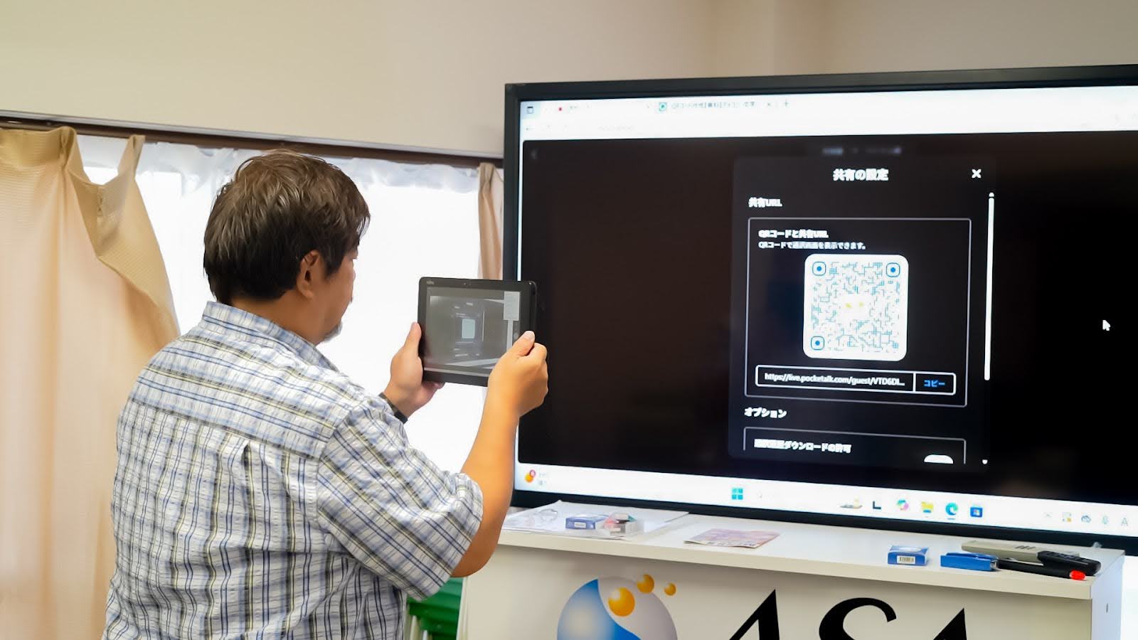共有QRコードを実習生それぞれのタブレットで読み取ることで、通訳結果をリアルタイムで共有します。